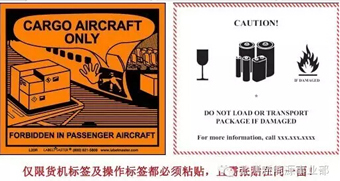 3. PI965-IA、IB和II除粘貼原有要求的標(biāo)簽外,還必須同時(shí)粘貼僅限貨機(jī)標(biāo)簽。PI965-IB及PI965-II貨物所需的標(biāo)簽必須粘貼在同一面上。(除經(jīng)營(yíng)人及東航物流批準(zhǔn)除外,以上要求同樣適用于PI968)