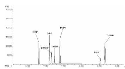 圖1 鄰苯二甲酸酯標(biāo)準(zhǔn)物質(zhì)氣相色譜-質(zhì)譜選擇離子色譜圖(0.5 μg/mL)