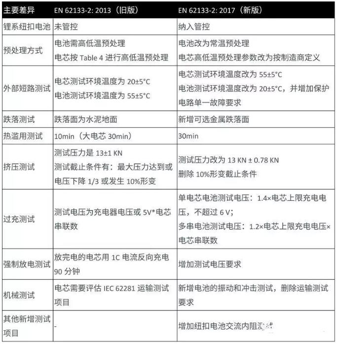 而鋰系電池部分,EN 62133-2:2017主要在以下方面進(jìn)行了更新: