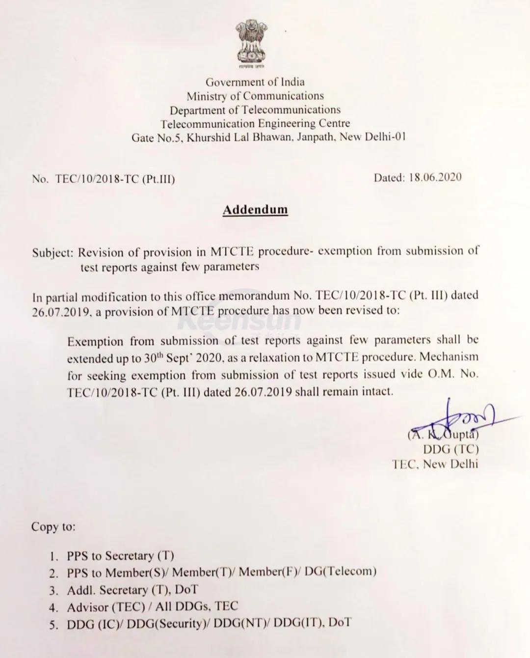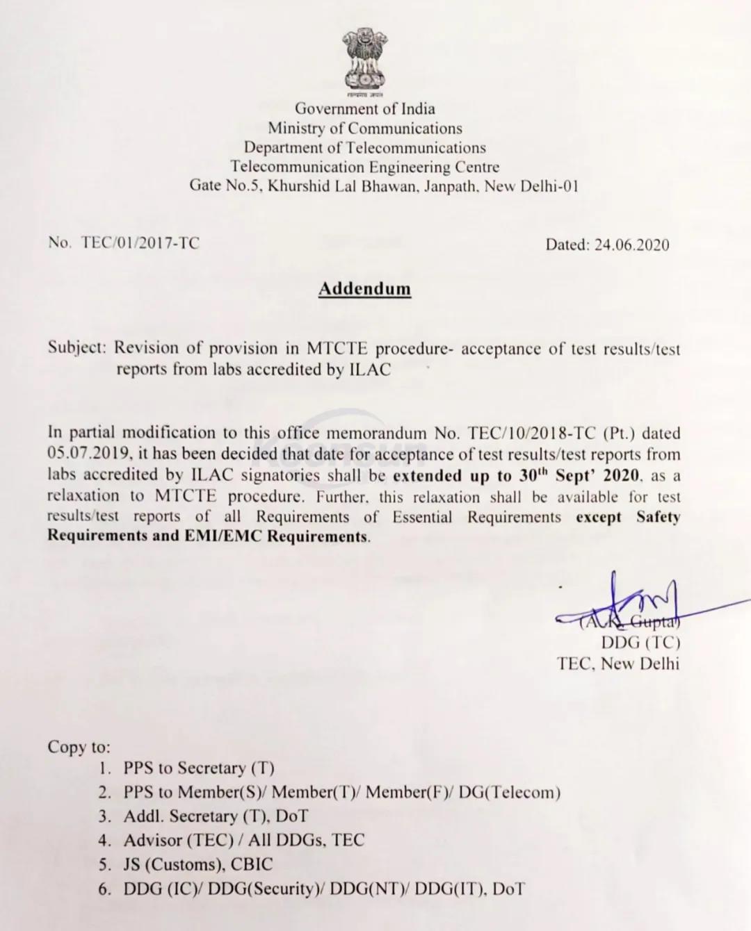 4、除安規(guī)要求和EMC/EMI要求外,其它基本要求接受國際ILAC認可實驗報告至2020年9月30日。國外/海外ILAC報告在2020年9月30日之前仍可使用,但EMI/EMC/安規(guī)測試必須在印度本底進行。