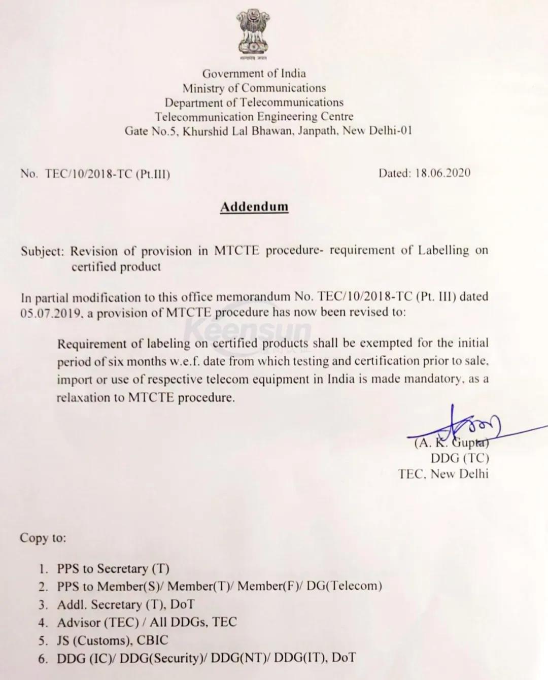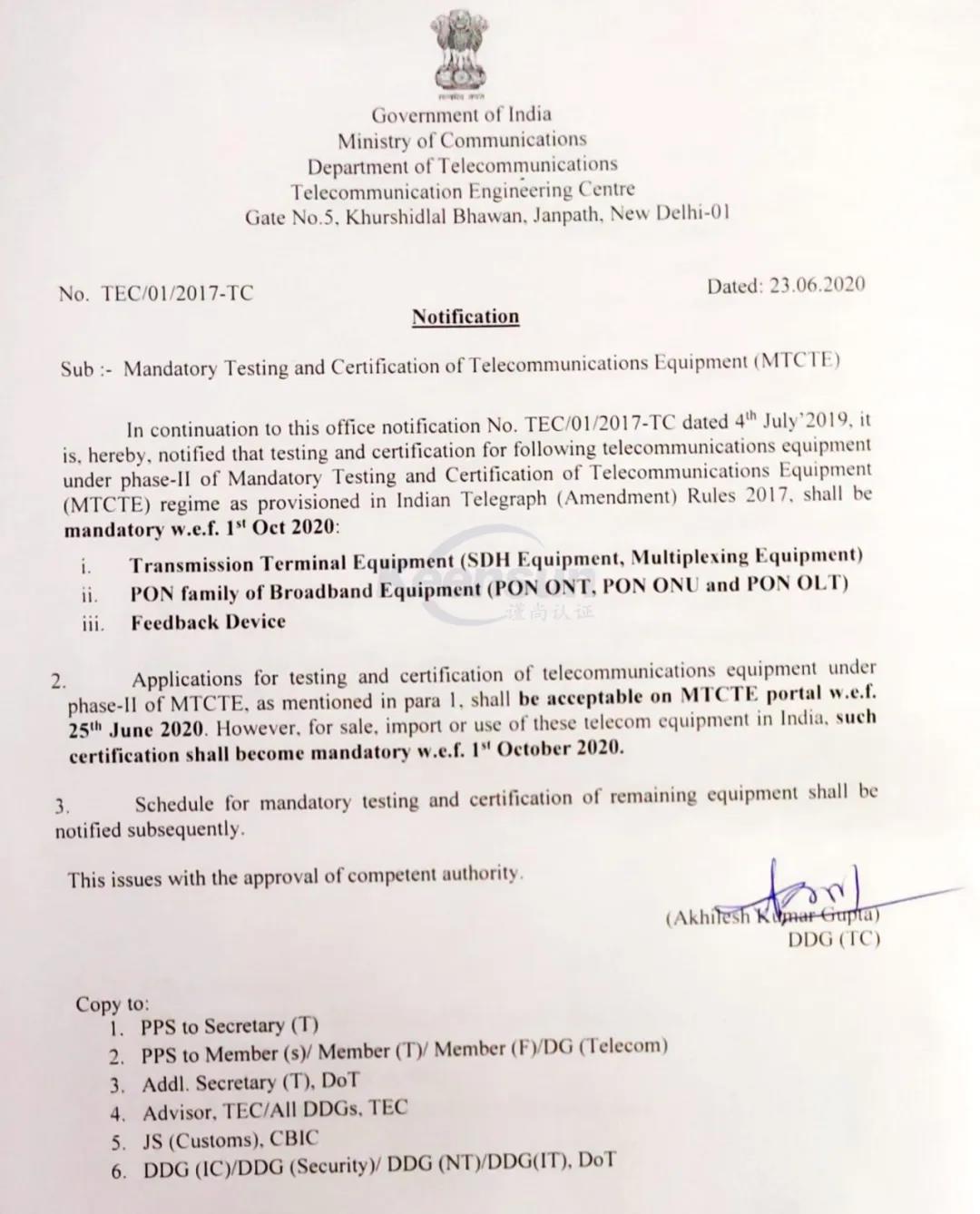 MTCTE認證是印度針對電子通訊類產(chǎn)品的強制測試和認證,在印度市場生產(chǎn)、進口、分銷或銷售的通信產(chǎn)品,都需要通過MTCTE強制認證。