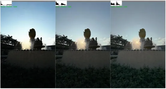 如下所示從左到右依次是低動(dòng)態(tài)、原圖、高動(dòng)態(tài)的圖。可見