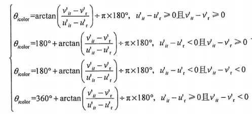 色調(diào)角:表示顏色的色調(diào)方向,通過u'、v'坐標(biāo)與白點(diǎn)的相對(duì)位置計(jì)算。