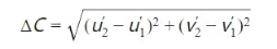 色距ΔC表示兩個(gè)顏色在色度圖中的直線距離,用于量化色度差異。在CIE 1976 UCS中,色距的計(jì)算直接基于u'和v'坐標(biāo)的歐幾里得距離。公式為