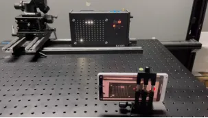 測(cè)試時(shí)需將DUT在水平方向先順時(shí)針旋轉(zhuǎn),再逆時(shí)針方向旋轉(zhuǎn),旋轉(zhuǎn)中心為鏡頭的幾何中心,保存各視場(chǎng)圖像,再統(tǒng)計(jì)分析和計(jì)算各視場(chǎng)圖像中的鬼像的面積占比和亮度比值,測(cè)試工作量比較大。