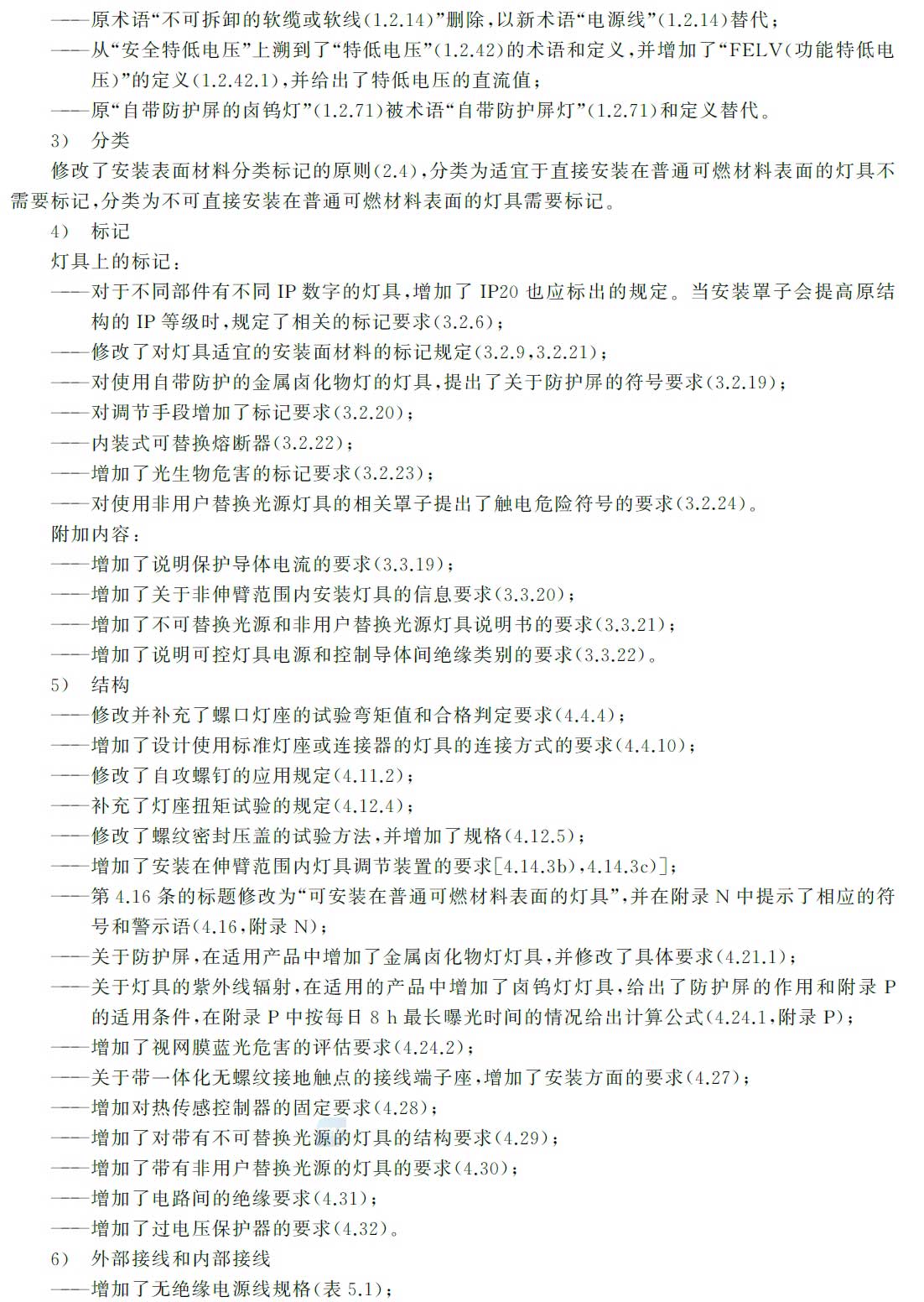本次新標等同采用了IEC 60598-1:2014版,從IEC的第6版跳過了第7版,直接采用第8版。新標與舊標有不少變化,