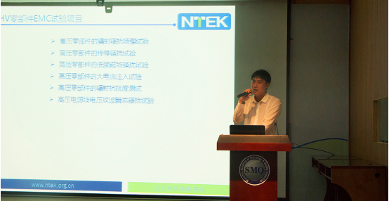Chen Yixu, Engineering Manager of NTEK Automotive Division, delivered a speech on "Testing and Analysis of High-Voltage Components for New Energy Vehicles" at this summit forum, correcting the mistakes made by enterprises and giving suggestions. Participants shared my laboratory's experience in the electromagnetic compatibility test of high-voltage components for electric vehicles, and classified and analyzed the problems that occurred during the testing of such components.