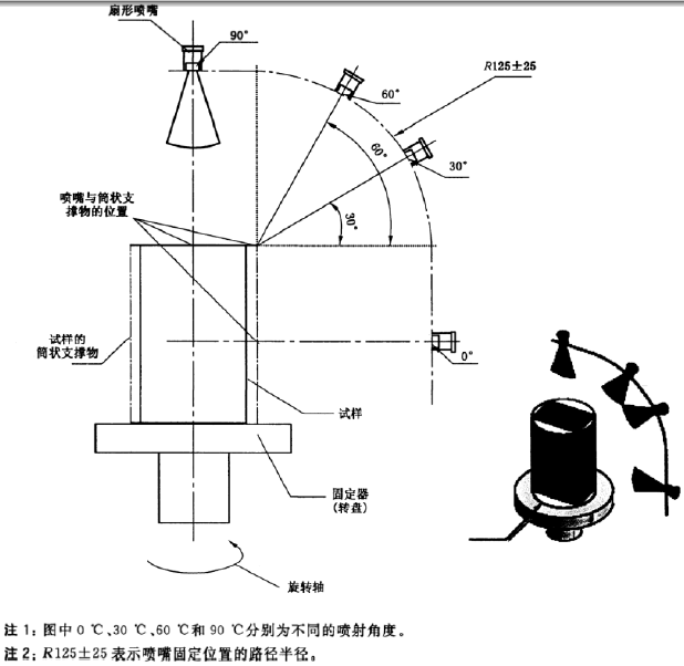 試樣臺(tái)轉(zhuǎn)速:5r/min,噴水時(shí)間:30s,流量:(14~16)L/min,溫度:(80±5)℃,壓力:( 0~12)MPa