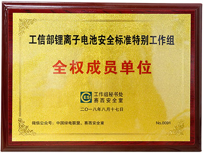 工信部鋰離子電池安全標準特別工作組-全權成員單位