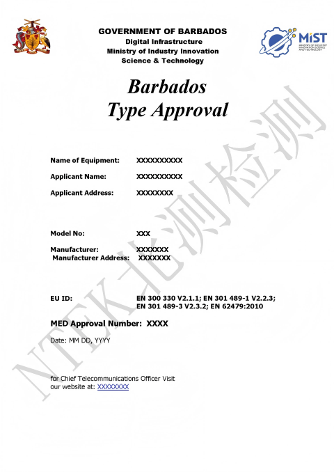 巴巴多斯的電信部門(Telecoms Unit)簡稱為”TU”,負責監(jiān)管該國的型式認證 ,電信部門由巴巴多斯政府設(shè)立。該部門目前隸屬于創(chuàng)新、科學(xué)和智能技術(shù)部。電信部是負責電信的部的技術(shù)部門。該部門的使命是促進競爭性、完全自由化的電信行業(yè),同時實現(xiàn)政府的愿景使巴巴多斯成為加勒比地區(qū)信息技術(shù)和電信的卓越中心。該部門根據(jù)《電信法》第 282B 章履行監(jiān)管和許可職能。