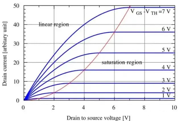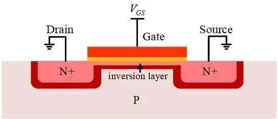 由于反型層相當于N摻雜的半導體,因此D和S直接直接連通,因此MOSFET導電溝道形成,進入導通狀態。