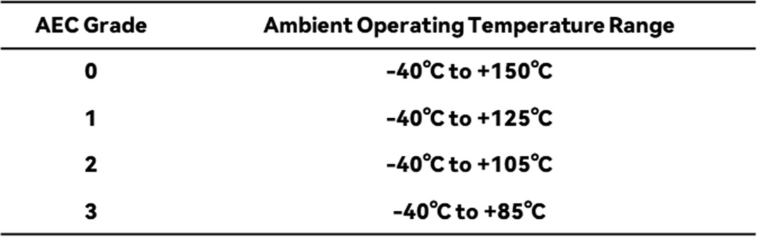 車規芯片的應用等級根據其在汽車中使用的環境溫度進行劃分,等級從0(最高)到3(最低)。應用等級決定了測試認證時參考的具體測試條件。