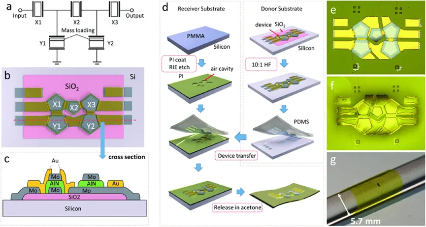 聲學(xué)濾波器通過將電信號(hào)轉(zhuǎn)換為聲信號(hào),在聲學(xué)域完成信號(hào)處理后,再將聲信號(hào)轉(zhuǎn)換為電信號(hào),從而實(shí)現(xiàn)對(duì)電信號(hào)的濾波功能。與傳統(tǒng)的LC、介質(zhì)和腔體濾波器相比,微聲濾波器由于在傳輸方程中引入了多個(gè)傳輸零點(diǎn),具有更高的Q值和更好的濾波性能。同時(shí),由于聲波的波長僅為電信號(hào)的十萬分之一,微聲濾波器的體積比電學(xué)濾波器小得多,因此能夠兼顧高性能和小體積。