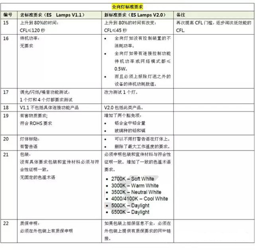 4. 增加了ES照明產品規范的融合性和協調性。