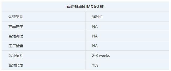 3. IMDA認證申請周期需要2到3周時間,需要當地代表。
