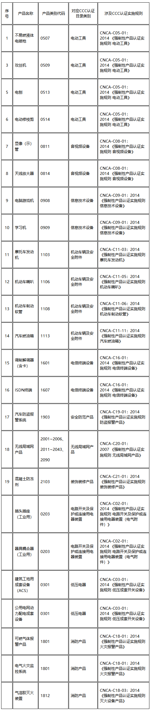 注:未標(biāo)注序號(hào)的產(chǎn)品在CCC產(chǎn)品目錄中屬于1種產(chǎn)品下的部分產(chǎn)品。