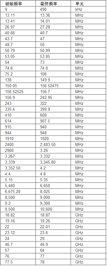 第2條 - 修改受限輻射設(shè)備可用的替代發(fā)射限值的無線電頻段表。