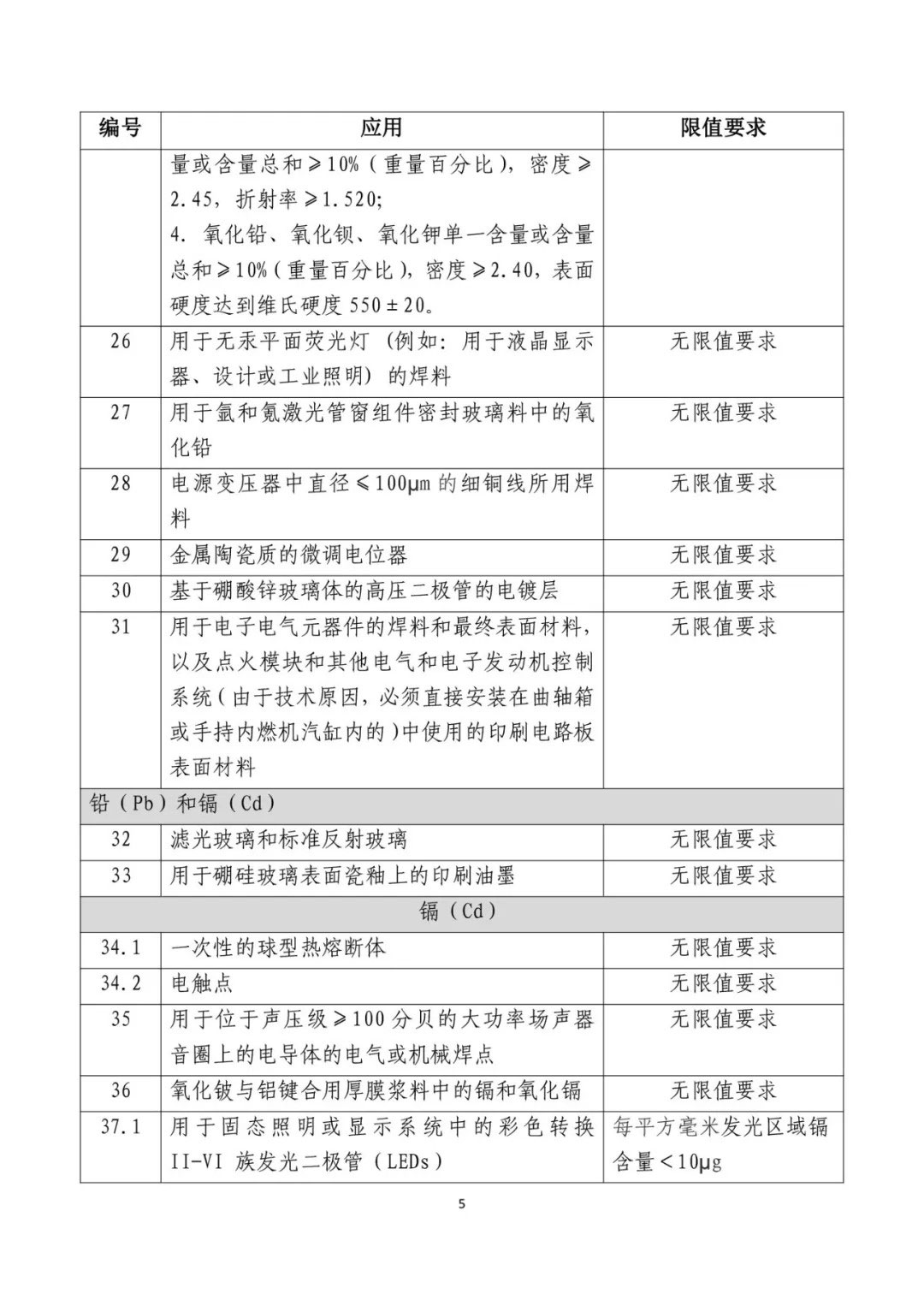 為貫徹落實《電器電子產品有害物質限制使用管理辦法》,2018年3月15日中華人民共和國工業和信息化部發布了《電器電子產品有害物質限制使用達標管理目錄(第一批)》和《達標管理目錄限用物質應用例外清單》,并將于2019年3月15日正式施行。納入目錄的產品,鉛、汞、鎘、六價鉻、多溴聯苯和多溴二苯醚的含量應該符合電器電子產品有害物質限制使用限量要求等相關標準,并納入電器電子產品有害物質限制使用合格評定制度管理范圍。列入《達標管理目錄限用物質應用例外清單》的可暫不按本要求執行。
