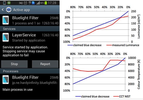 例如:部分安卓系統的軟件宣稱能夠按照百分比衰減藍光,但是實際情況呢?