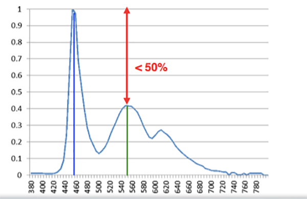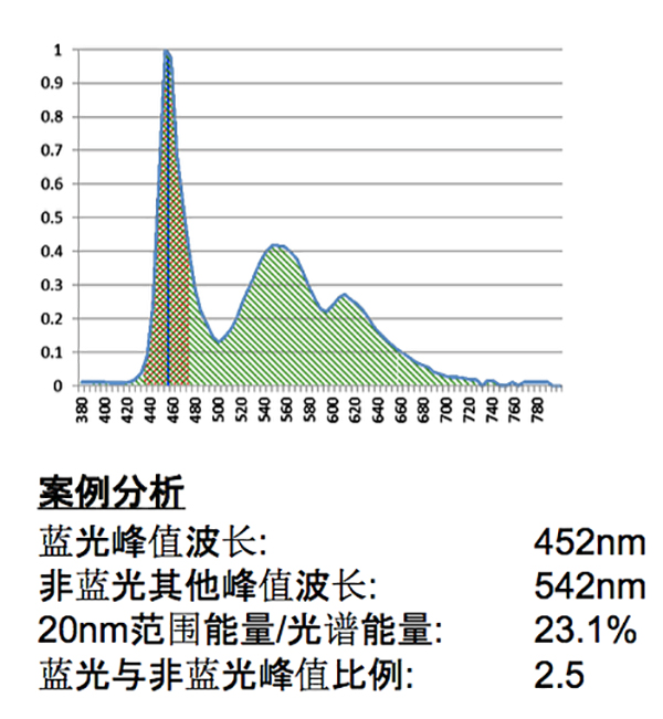 藍光峰值與非藍光峰值比例藍光峰值小于非藍光其他峰值的兩倍
