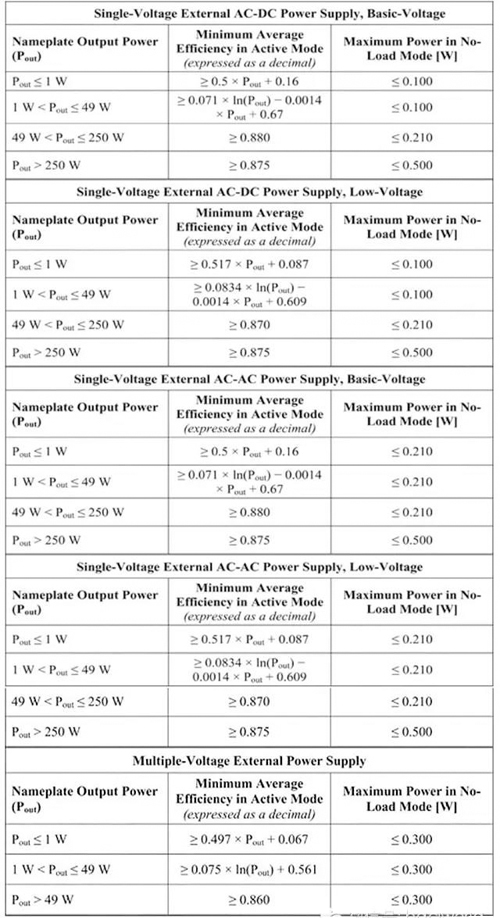 2014年2月10日,美國能源部(DOE)發(fā)布最終規(guī)則,對外置電源提出新的能效要求。新的法規(guī)適用于所有直接工作的外置電源,包括2007年標(biāo)準(zhǔn)中已經(jīng)涵蓋的A類電源以及在之前的DOE法規(guī)中沒有包括的電源,例如: