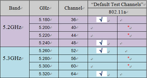 “*”指的平均功率大于默認(rèn)測試信道時的可能需要測試的信道。