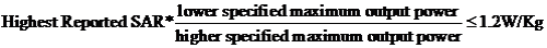 時,則規(guī)定功率較小的那一段不需要進(jìn)行測試。(舉個例子測試的U-NII-1段的最大報告SAR值為1.4W/Kg,U-NII-1段規(guī)定的功率為250mW而U-NII-2A段的是規(guī)定功率為200mW,那么adjusted SAR=1.4*200/250=1.12W/Kg<1.2W/Kg,所以U-NII-2A段不需要測試。)反之,兩段都需要分開進(jìn)行單獨(dú)測試。